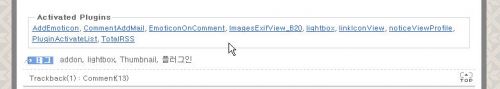 태터1.0에 활성된 플러그인 리스트 보여주는 플러그인